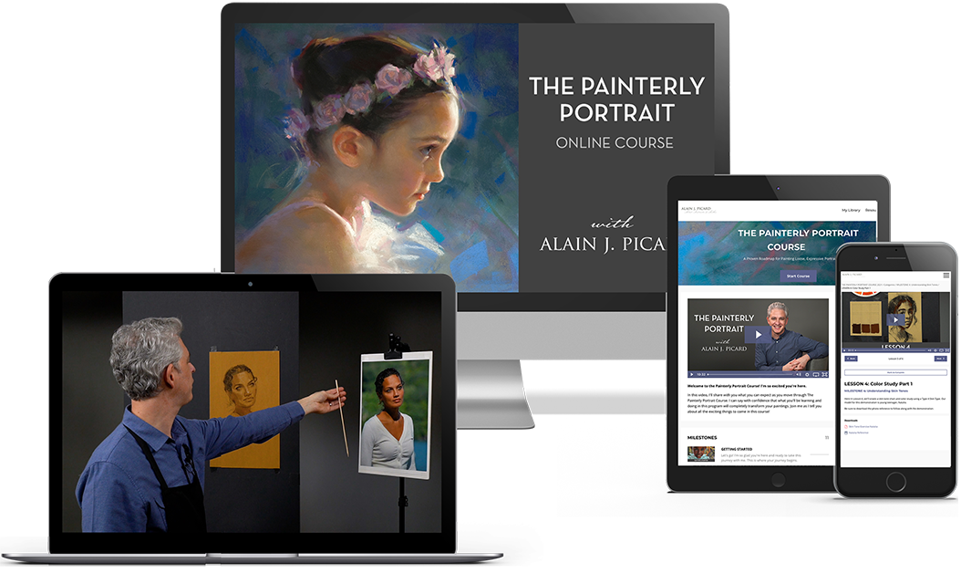 The Painterly Portrait Course is one of Alain’s Signature Courses, designed to help artists build strong foundations while developing a loose, expressive, painterly approach.