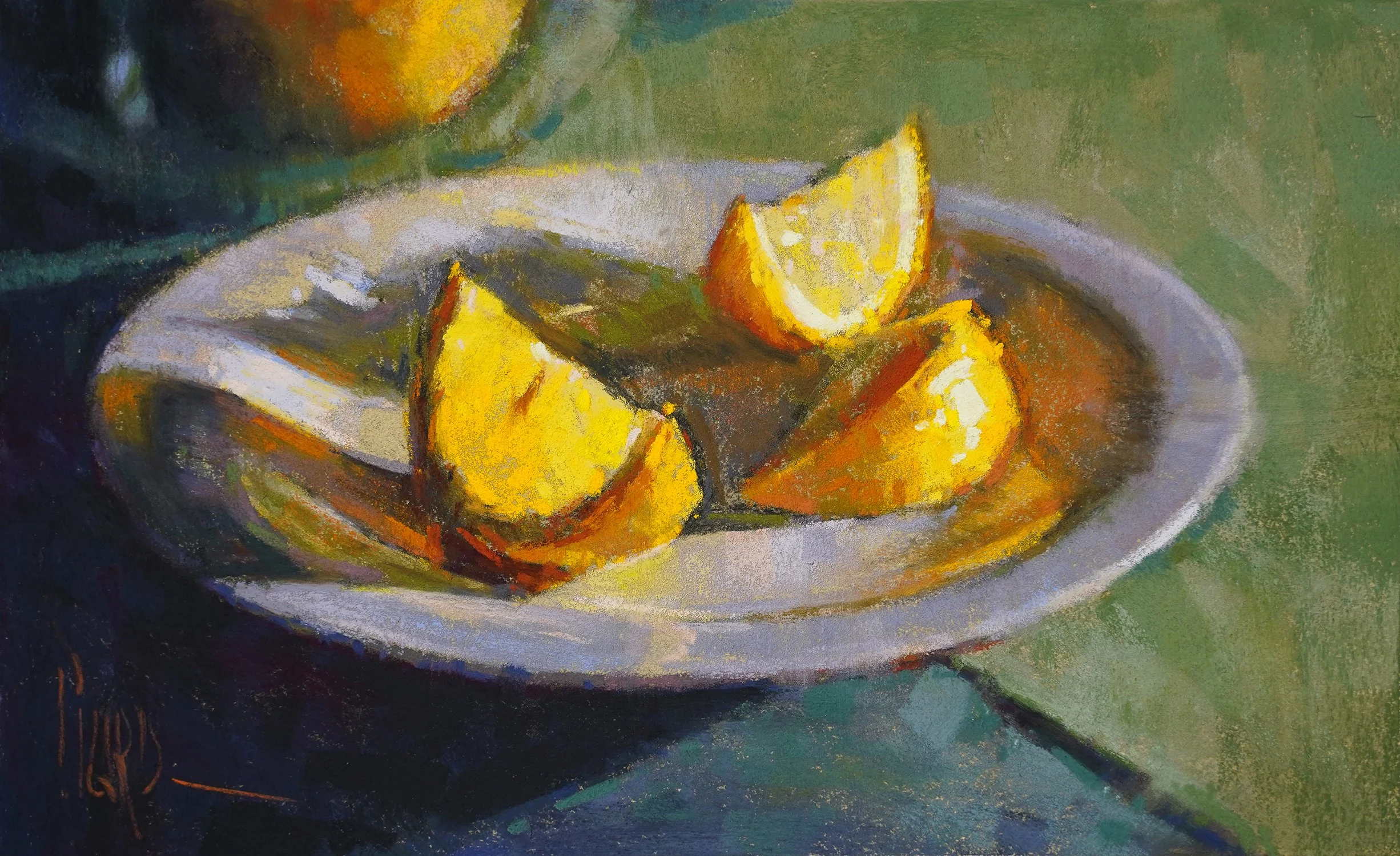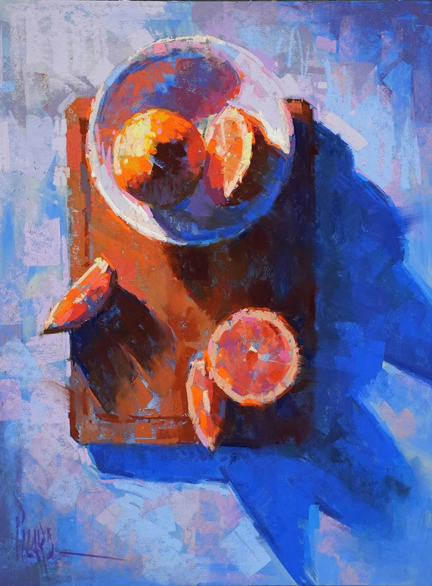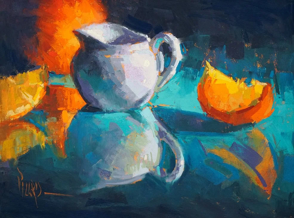 Beauty is so often found in simplicity. Consider the way light falls on an object, revealing its form and color against the deep rich tones of the background. Or how cast shadows run away from their origins as if hiding from the light. Here the stage has been set, and everyday objects are transformed into unwitting characters in the artist's story.